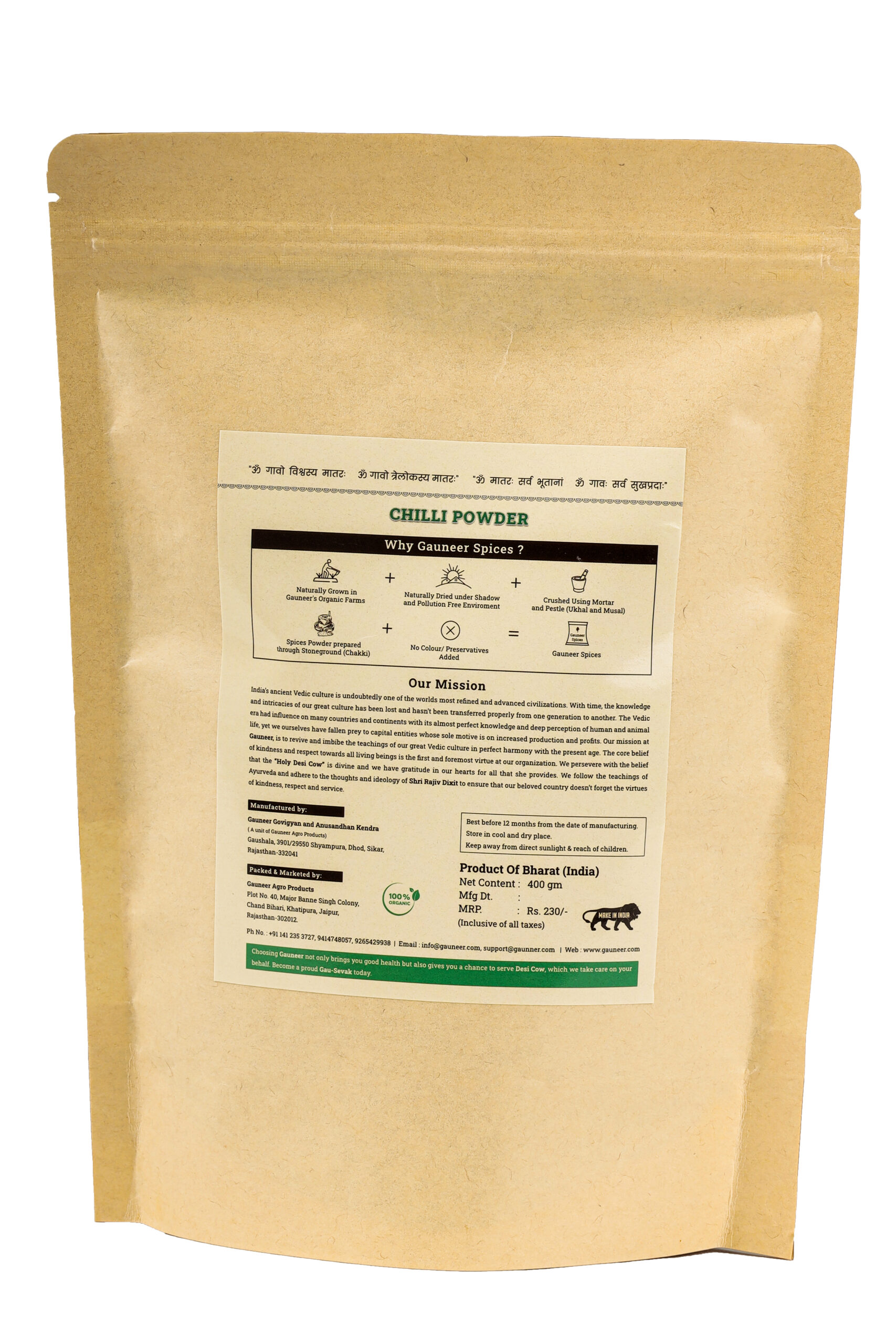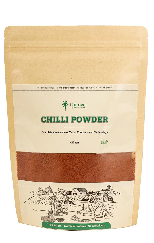 Chilli powder has a significant role in every Indian household. Gauneer’s chilli powder is different from the normal chilli powder which is available in super market as it is made from naturally grown, chemical free, and handpicked chilli sourced from Gauneer’s organic farm. Gauneer’s chilli is ground with Vedic method using ‘Mortar and Pestle (Ukhal and Musal)’. It is a cold grinding method that retains all its essential oils and nutrients along with its natural aroma and taste.